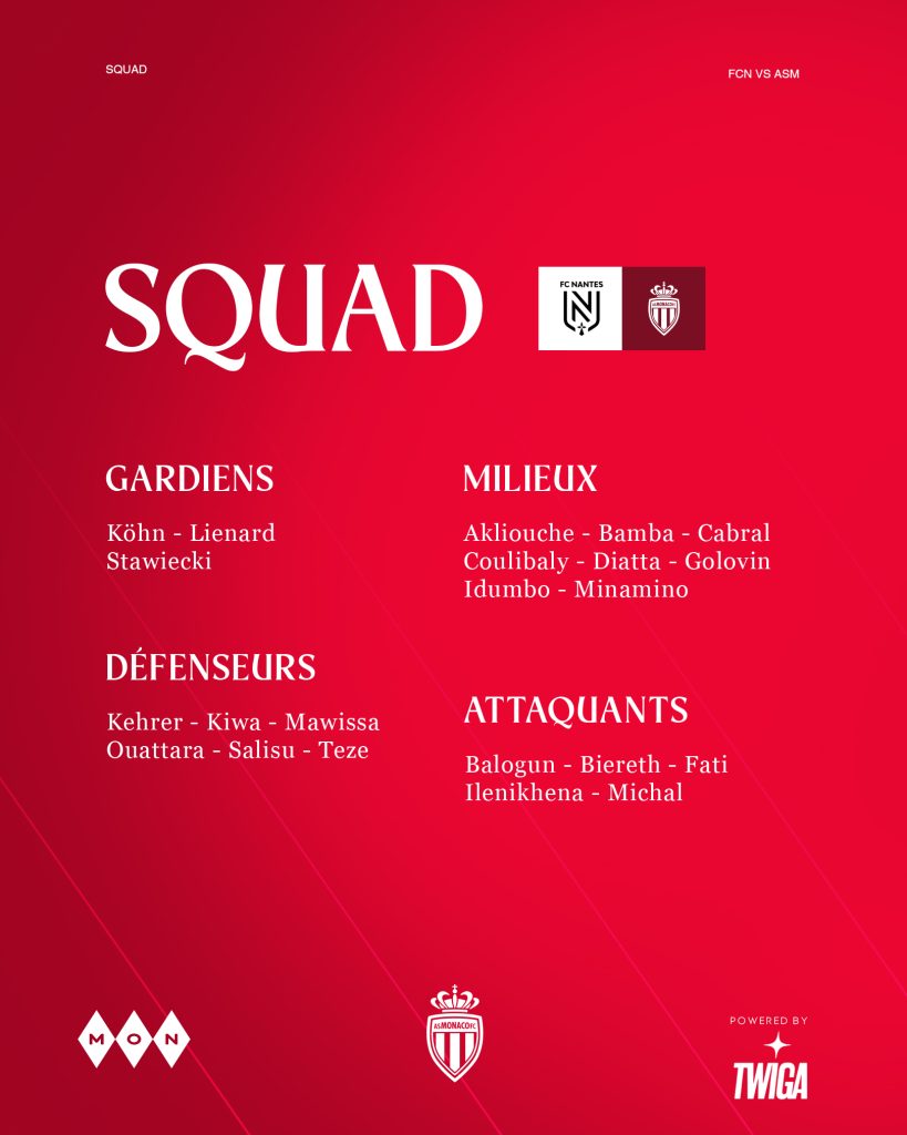 La séance d’entraînement de ce mardi a fait trancher Sébastien Pocognoli. L’entraîneur de l’AS Monaco n’a pas retenu Caio Henrique pour le déplacement à Nantes, lui qui a été victime d’une inflammation du pied gauche.