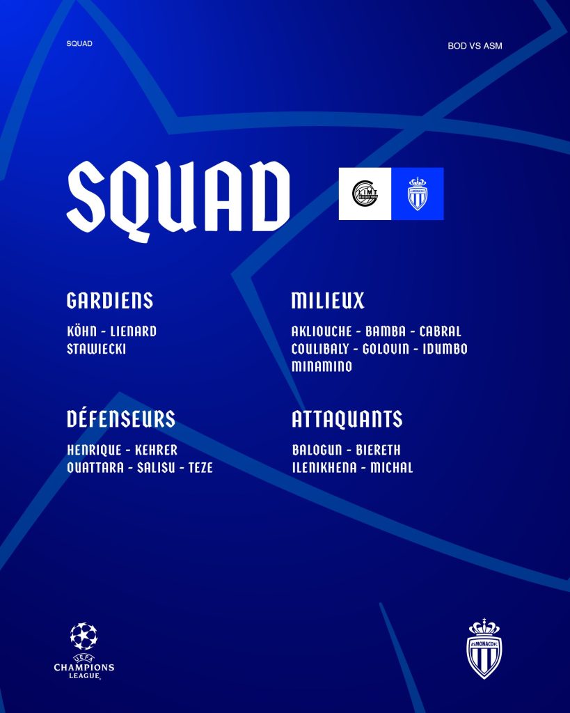Pas une semaine ne passe sans qu’elle charrie son lot de blessés. Alors que l’AS Monaco doit déjà composer avec de nombreux absents, elle se rendra également à Bodö, mardi en Ligue des champions, sans Ansu Fati et Krépin Diatta. Le premier est malade tandis que le second souffre de l’œil droit.
