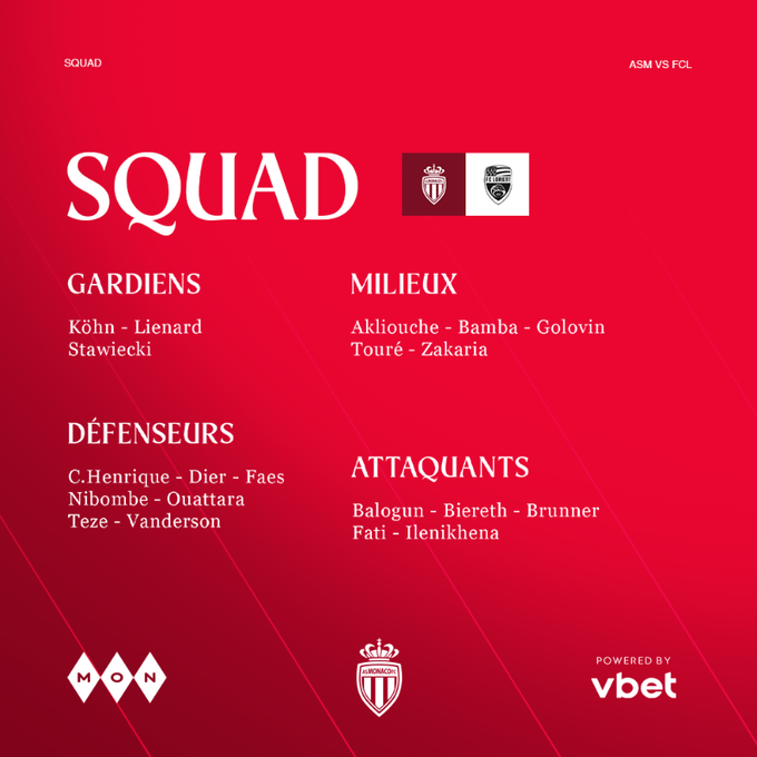 Ce vendredi, l’AS Monaco reçoit le FC Lorient (19h). Sébastien Pocognoli peut s’appuyer sur les retours d’Ansu Fati et Vanderson, blessés de longue date. Malade pour Orléans, Maghnes Akliouche est rétabli. C’est aussi le cas d’Aladji Bamba, touché par un virus comme Lucas Michal, qui lui n’est pas remis.